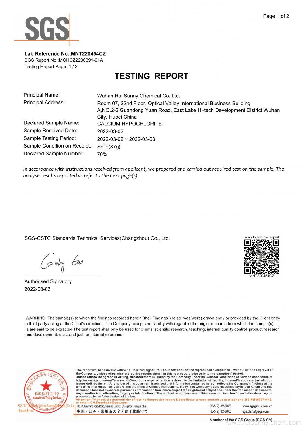 Wuhan Ruisunny Chemical Co.,Ltd was established in 2010 with registered capital of CNY 20 million, the company focuses on trading of such chemicals as WATER TREATMENT CHEMICALS, FOOD ADDITIVES and general INORGANICS/ORGANICS. Over the years of development, the sales of the company has extended to more than 50 countries or regions. Based on principle of Co-win, we are looking forward to cooperating with you!